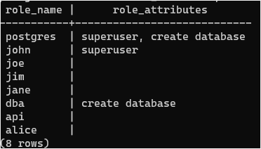 Summary: in this tutorial, you will learn how to use the PostgreSQL list user command to show all users in a PostgreSQL database server.